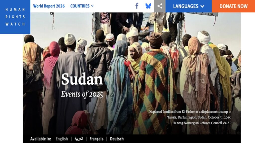 Human Rights Watch (HRW) published its World Report 2026 on 4 February 2026. Released in English, Arabic, French, and Dutch, the report — the organisation’s 36th annual review — examines human rights practices and trends in more than 100 countries worldwide, including Sudan and South Sudan.