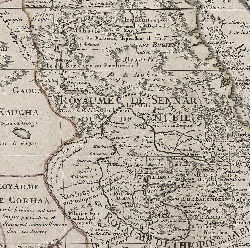 An 18th-century map by French cartographer Guillaume Delisle depicting “The Kingdom of Sennar, or Nubia.” Source: Wikimedia Commons